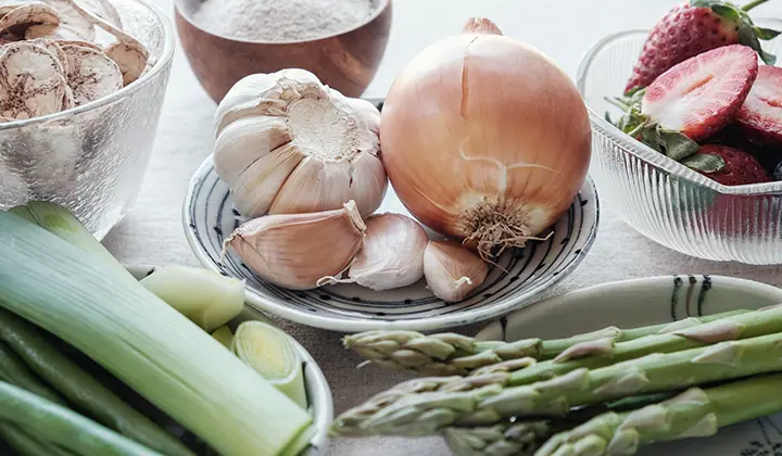 | Fructo-Oligosaccharide (Inulin und Oligofructose) | Zwiebeln, Knoblauch, Spargel, Lauch, Artischocken, Chicorée, Schwarzwurzel, Kohl, Topinambur |
